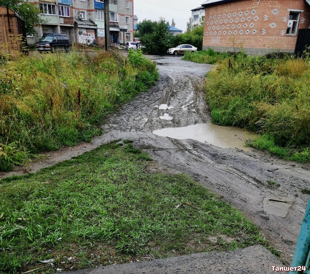 Добрый день. С приходом сезона дождей в микрорайоне Новый Тайшета поход на работу превращается в «бег с препятствиями «. По обочине возможно идти только по траве, за что спасибо надо сказать матушке-природе, а никак не администрации города.