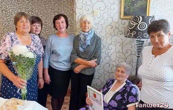 Директор Управление социальной защиты и социального обслуживания населения по Тайшетскому району Светлана Береснева совместно с председателем Совета ветеранов Бирюсинска Валентиной Сударевой поздравили Нину Мартыновну с юбилеем, вручили ей персональное поздравление президента России и подарки.