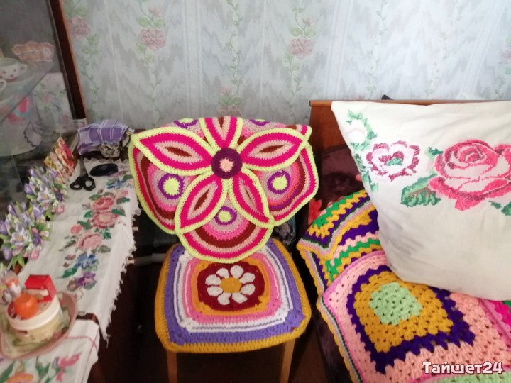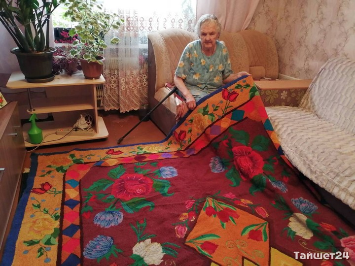 А ещё всю свою жизнь наша героиня увлекалась рукоделием: вышивала полотенца, вязала крючком и на спицах – носки своим детям и внукам, набивала ковры. Всему этому она научилась в детском доме. Попросила мужа сделать специальную иглу, сшила мешковину, наклеила белую простынь, наметила узоры, потом набивала нитки, которые распускала с ненужных вещей. На ковер размером 4 на 2,70 метров уходило около шести месяцев.