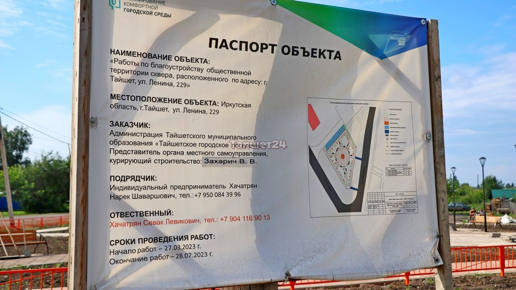 Сквер напротив школы №2, строительство которого ведётся в Тайшете с начала лета, не будет сдан в эксплуатацию вовремя.