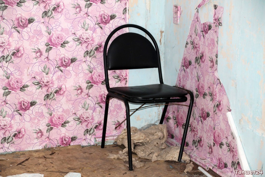 Обстановка в общежитии пугает: окон в подъезде и коридорах нет, с потолка свисают провода, а пол вот-вот готов провалиться. Идеальное место для съёмок какого-нибудь мистического сериала.