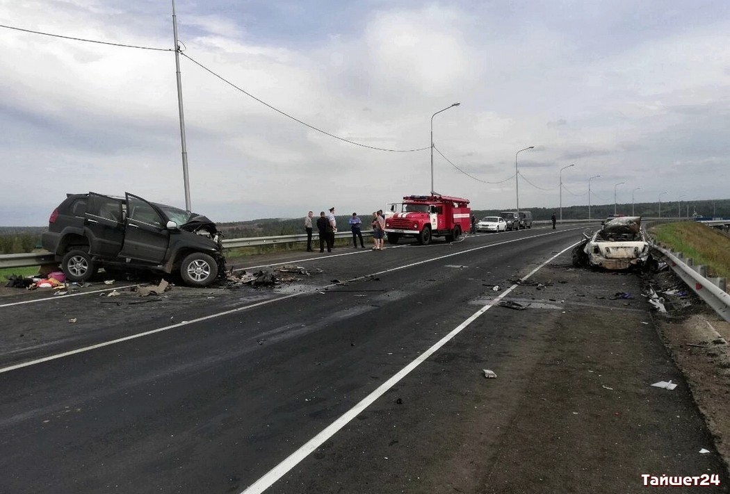 ДТП случилось 1 сентября около 14 часов. В результате произошедшего загорелась Toyota, её 28–летний водитель скончался на месте. 44-летний водитель Lexus, его 42–летняя супруга и 6-летняя дочка с различными травмами госпитализированы. Известно, что они уроженцы Красноярска и возвращались домой из Братска.