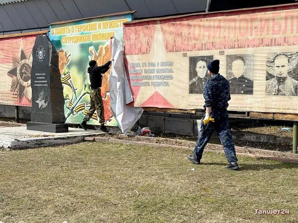 Полиция нашла время для уборки территории около Мемориала на ул. 19 Партсъезда, где по традиции пройдёт митинг 9 мая, и которая в этом году будет благоустроена в рамках федерального проекта «Формирование комфортной городской среды».