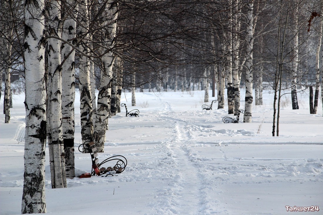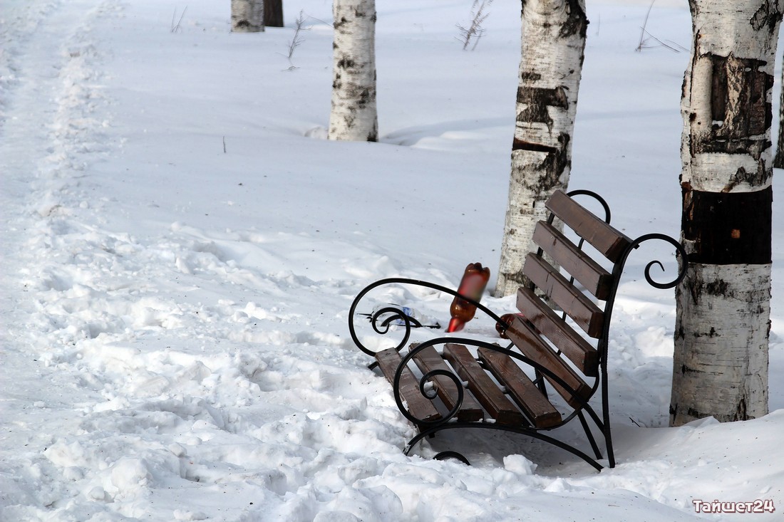 Парк в микрорайоне имени Пахотищева в Тайшете сегодня напоминает Богом забытый уголок. Лавочки утонули в снегу, урны забиты доверху бутылками, и только несколько узеньких тропинок говорят о том, что там изредка всё же ступает нога человека.