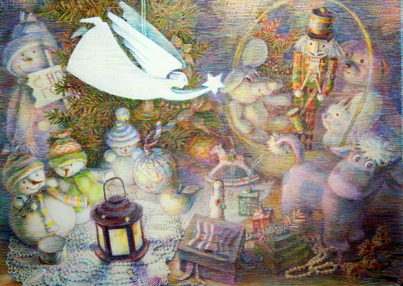 Художница также виртуозно владеет карандашом и пером. Её удивительные графические иллюстрации, полные внутренней энергии и гармонии, отличаются точностью деталей и неповторимым стилем.