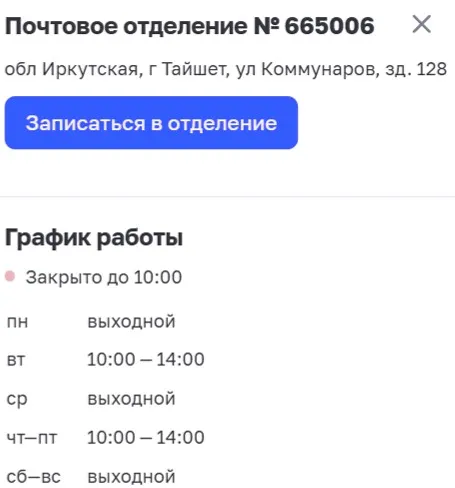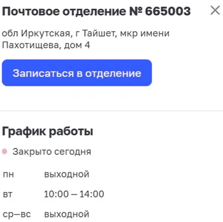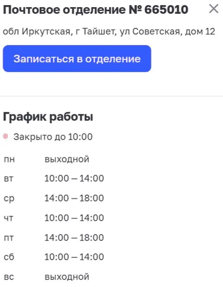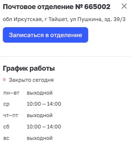 В Тайшетском районе, как и везде, почтовые отделения работают по принципу «когда захотим». Одни открыты с 10:00 до 14:00, другие — с 14:00 до 18:00. А выходные? Тут полный ребус: некоторые отдыхают со среды по воскресенье, а кто-то и шесть полновесных дней в неделю.