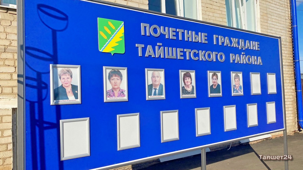 Завершено оформление стендов у здания администрации Тайшетского района. Недавно на них появились светлые образы Почётных граждан Тайшетского района.