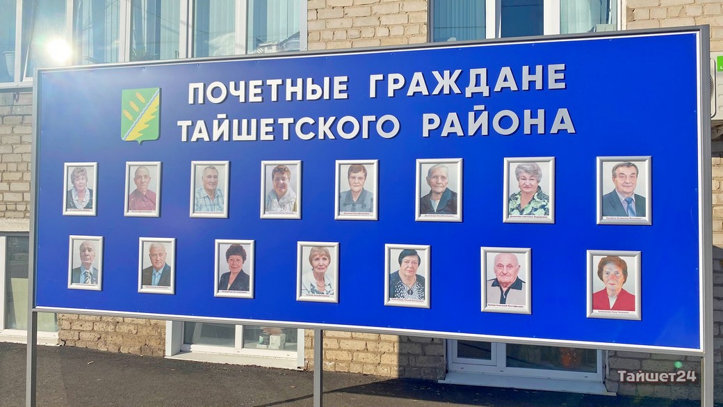 Завершено оформление стендов у здания администрации Тайшетского района. Недавно на них появились светлые образы Почётных граждан Тайшетского района.