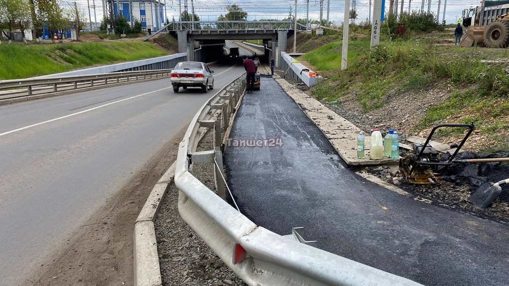 Под железнодорожным путепроводом в Тайшете ведутся работы по асфальтированию пешеходных дорожек.