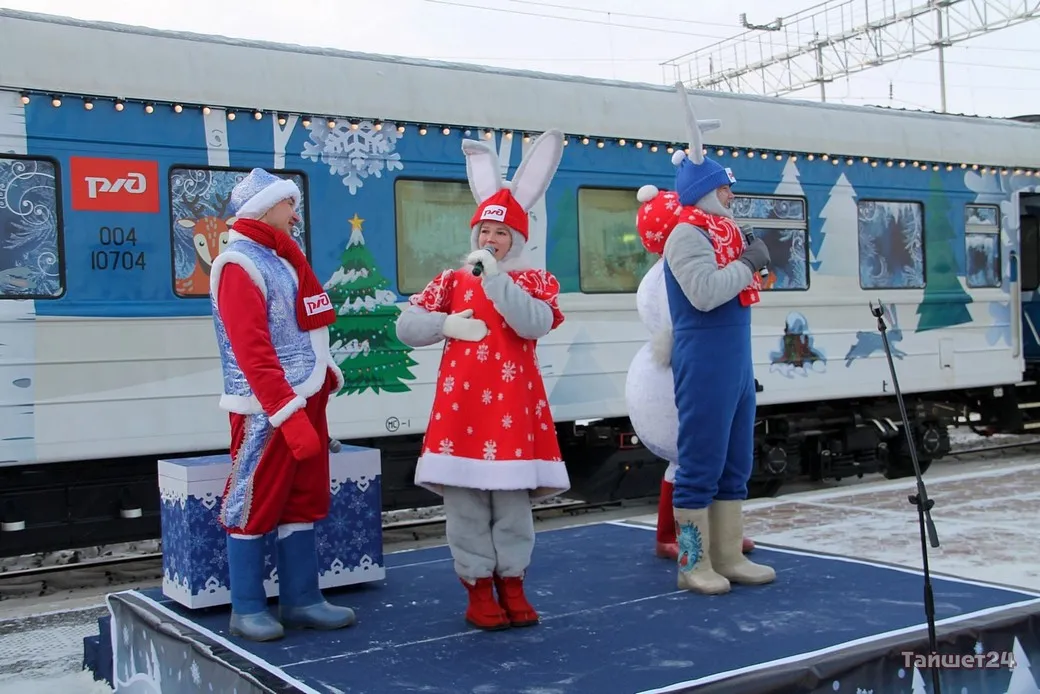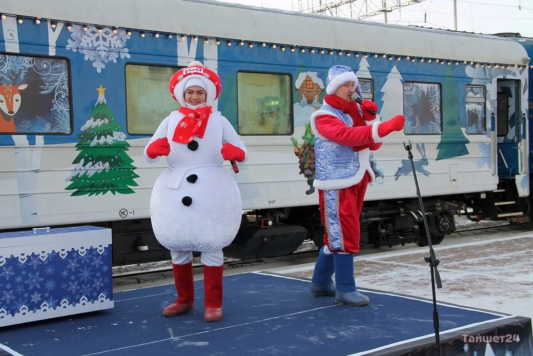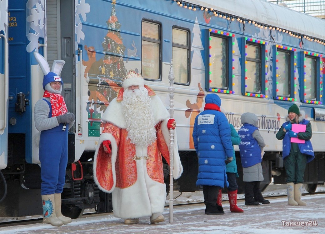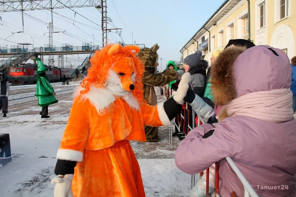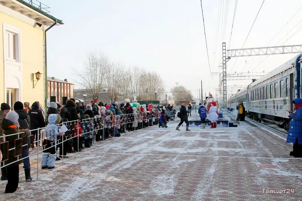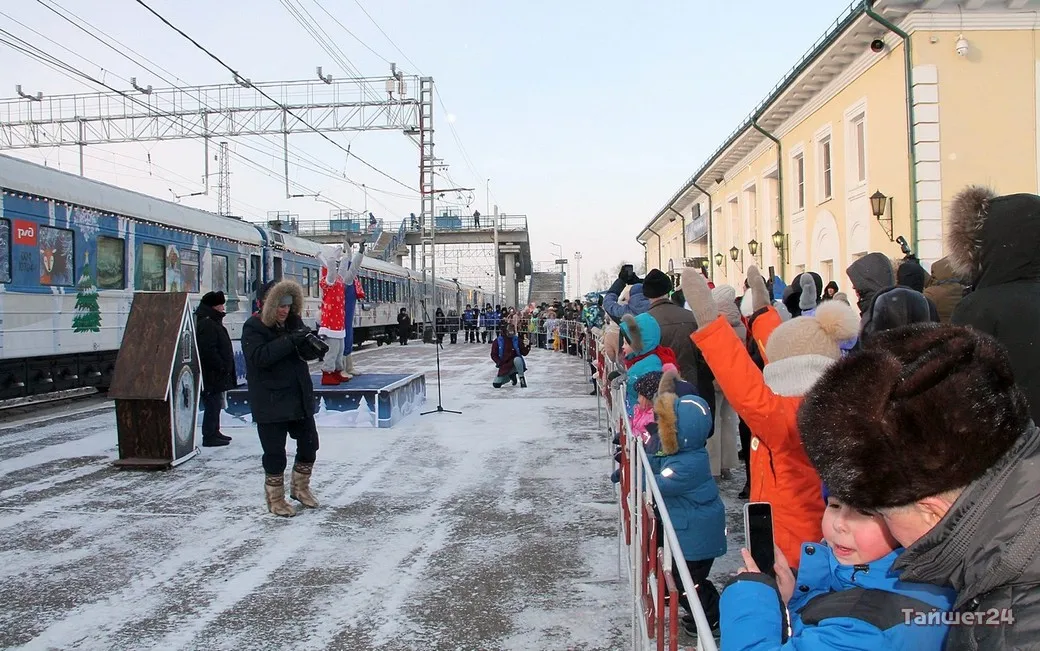 Напомним, что Поезд Деда Мороза простоит в Тайшете до 19:15. За это время те, кто купил билеты заранее, смогут посмотреть музыкальный спектакль и поучаствовать в экскурсии по поезду.