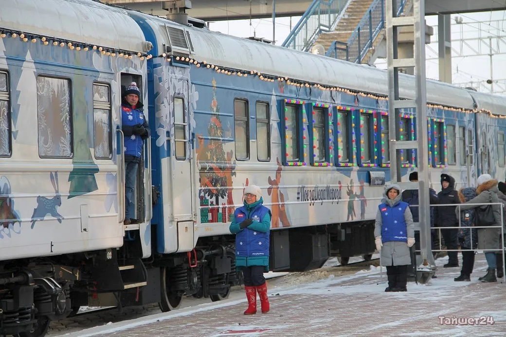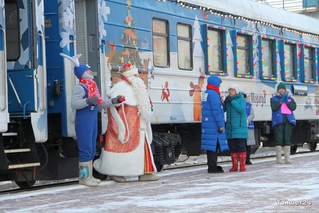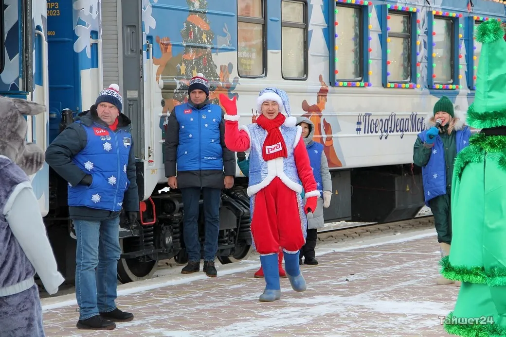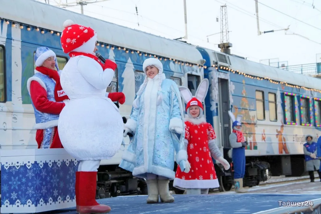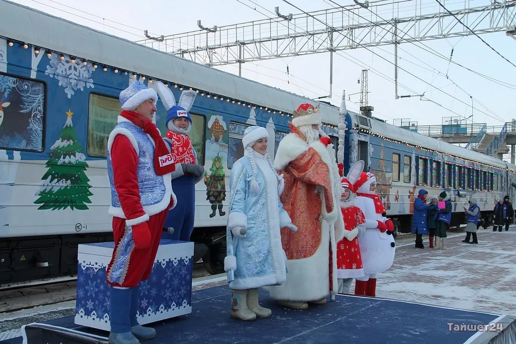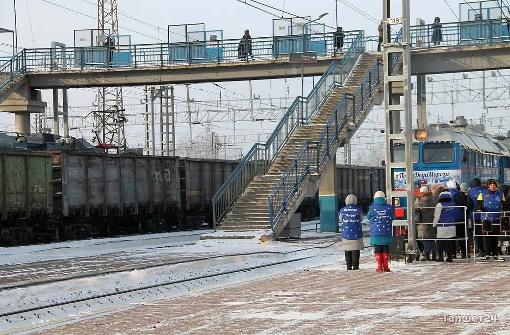 Напомним, что Поезд Деда Мороза простоит в Тайшете до 19:15. За это время те, кто купил билеты заранее, смогут посмотреть музыкальный спектакль и поучаствовать в экскурсии по поезду.