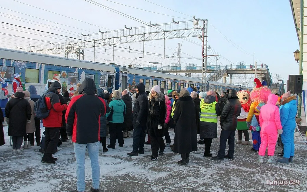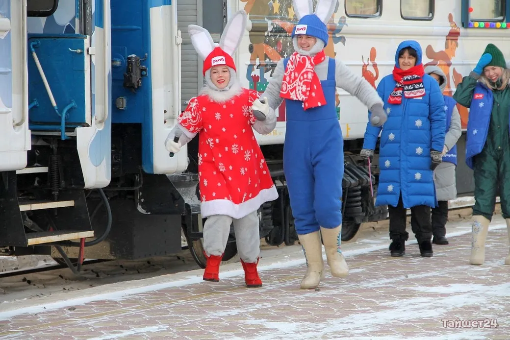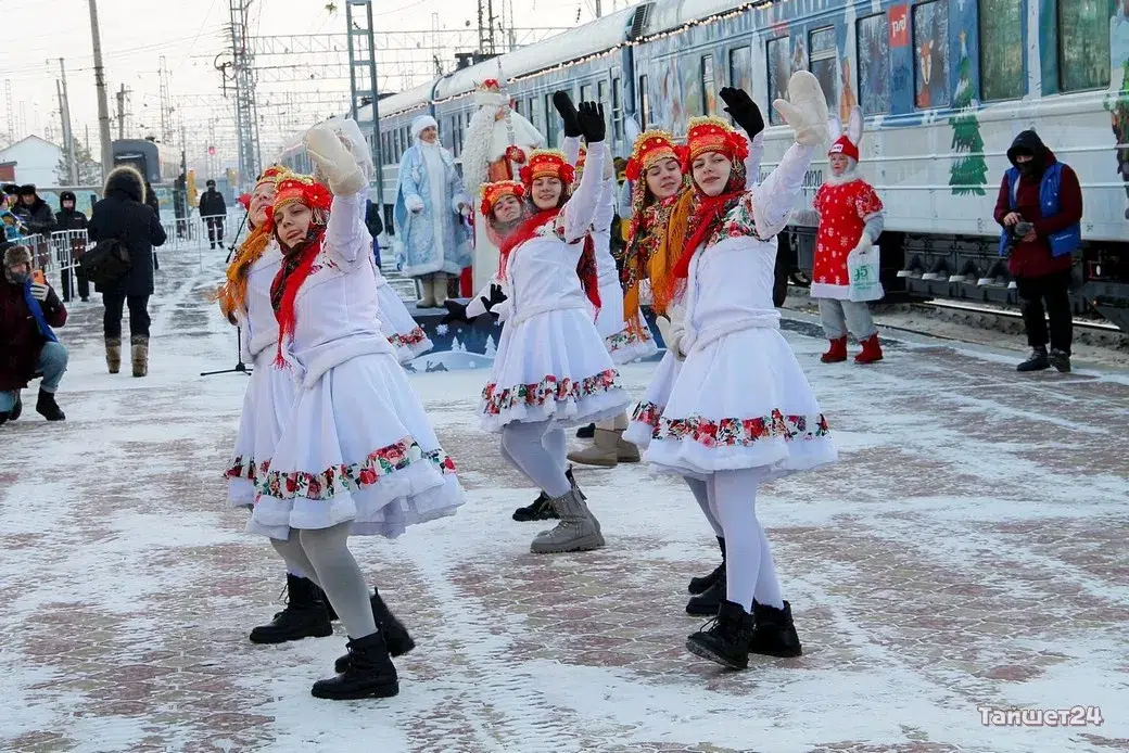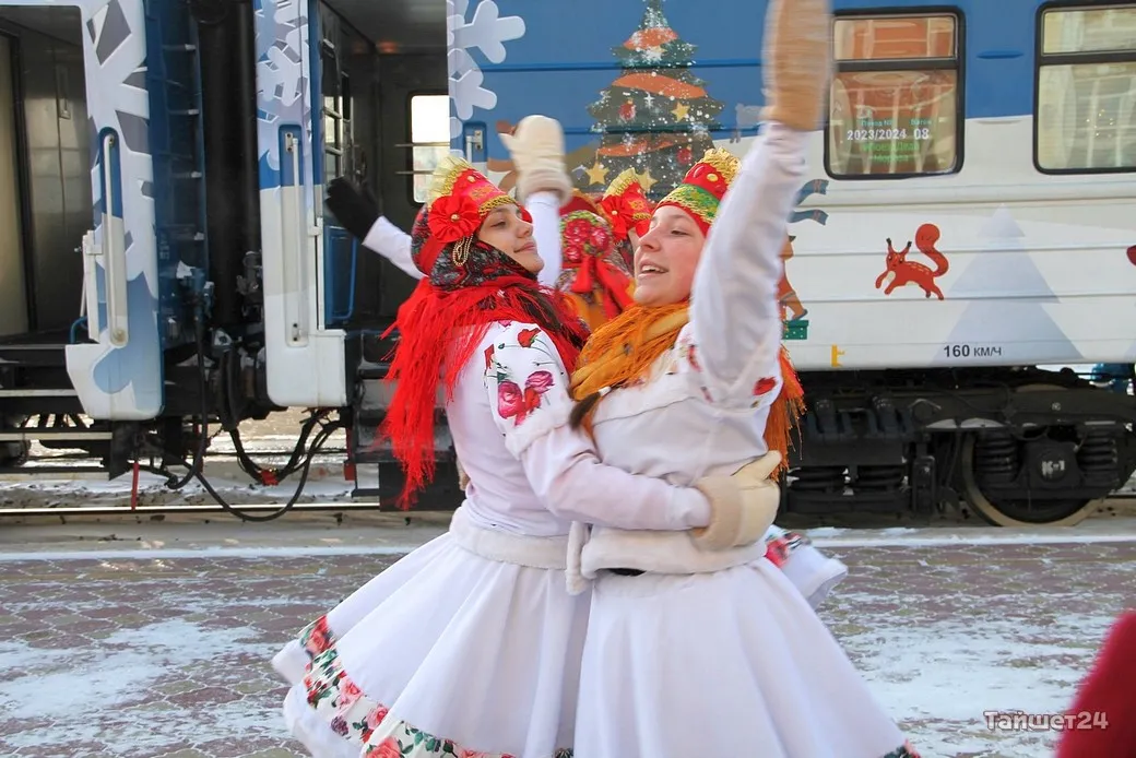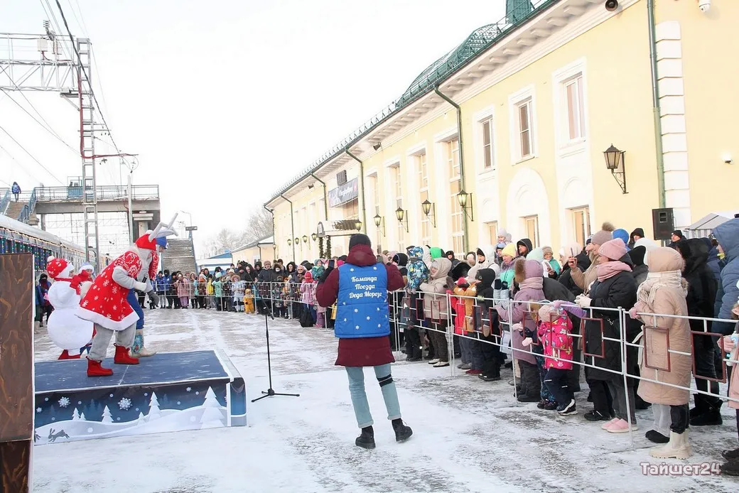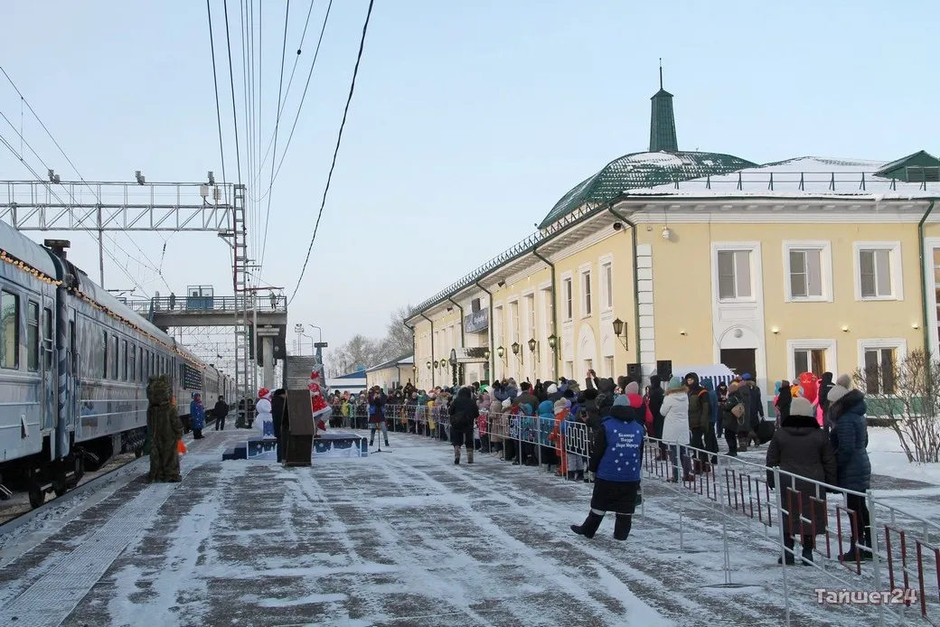 Напомним, что Поезд Деда Мороза простоит в Тайшете до 19:15. За это время те, кто купил билеты заранее, смогут посмотреть музыкальный спектакль и поучаствовать в экскурсии по поезду.