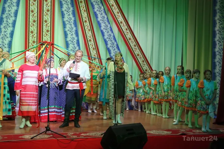 Гости из Тайшета Валерий Трушин и Виктория Голято в качестве поздравления исполнили задорные русские народные песни.