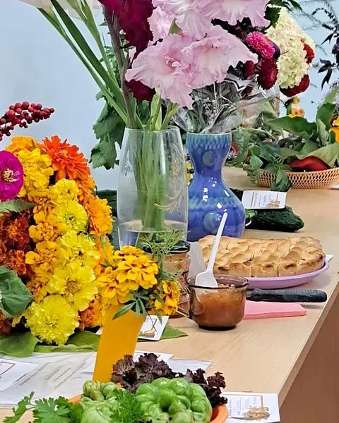 Участники представили на конкурс дары садов и огородов. Это многочисленные овощи (тыквы, кабачки, огурцы, перцы, различные сорта лука, помидоры), домашние заготовки — всё, чем богат осенью стол.