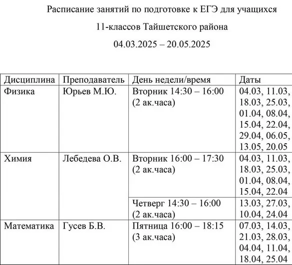 Проект реализуется при поддержке компании РУСАЛ и благодаря достигнутым соглашениям между Управлением образования Тайшетского района и ИРНИТУ. Цель – помочь школьникам успешно сдать ЕГЭ и подготовить их к поступлению в один из ведущих технических вузов страны. Курсы продлятся до 31 мая, и за это время ребята не только укрепят свои знания, но и получат ценные советы от преподавателей вуза. Подробнее можно уточнить у директоров школ или классных руководителей.