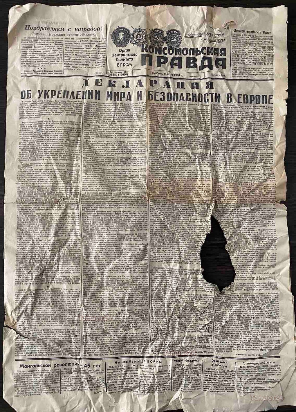 Необычную находку откопали рабочие на месте строительства будущей дамбы в селе Бирюса. При проведении земляных работ была обнаружена капсула с посланием от воспитанников местного детского дома, датируемая июлем 1966 года.
