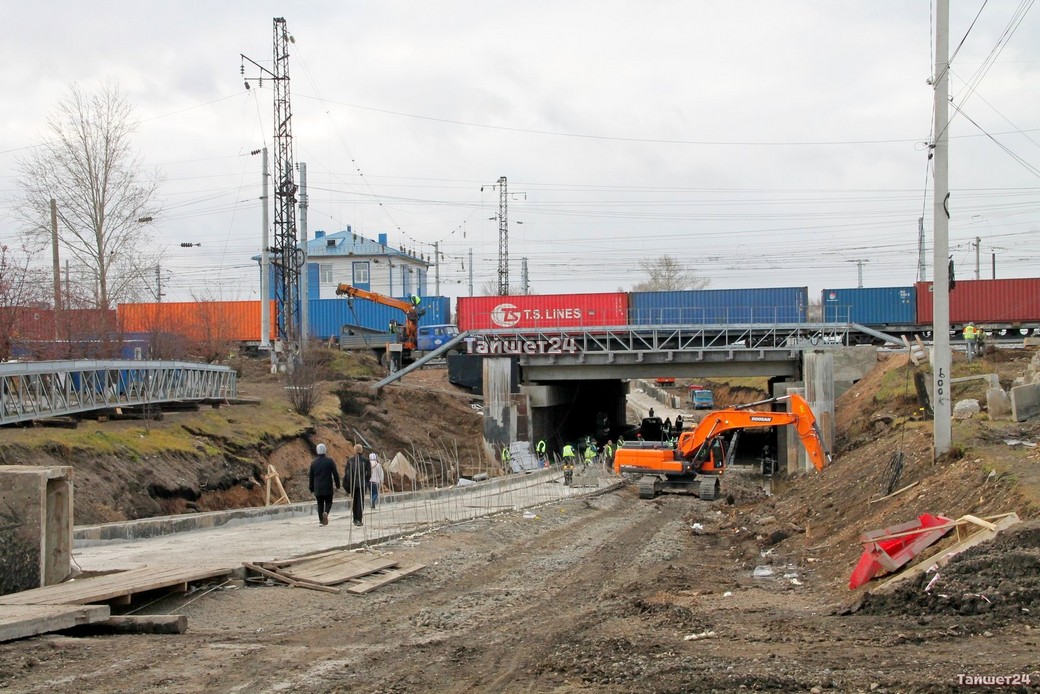 Через неделю, 1 ноября, первые автомобили должны проехать под железнодорожным путепроводом на стыке улиц Суворова и Пушкина в Тайшете.