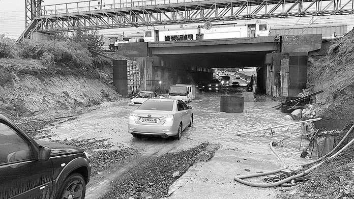 В июле того же года тоннель утонул. Это случилось после сильного ливня. Некоторые машины глохли в этой метровой луже, и водители по пояс в воде вынуждены были их выталкивать.