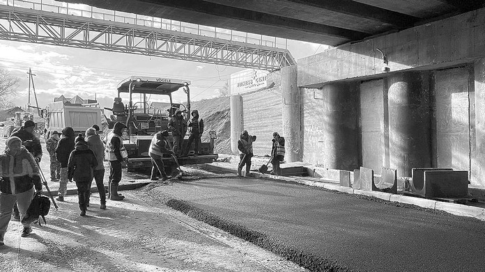 В это время строители активно нарезали тротуары, готовили дорожное полотно, отсыпали, бетонировали и покрывали его асфальтом.