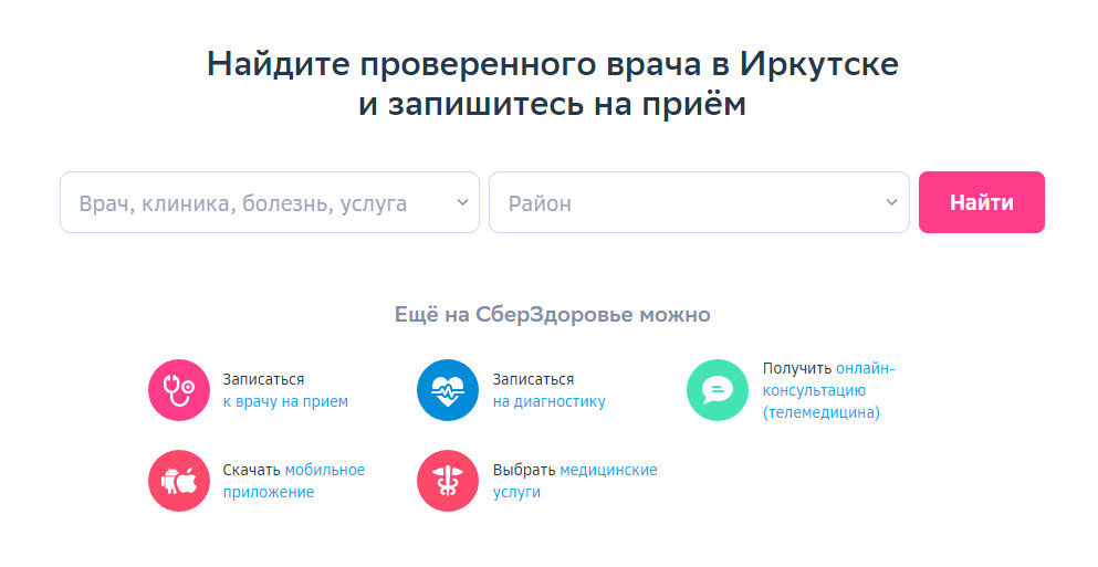 В последние годы у людей значительно выросло внимание к своему здоровью. Тем не менее, многие жители Иркутска не хотят тратить время на поход в поликлинику, чтобы записаться на прием. Помочь в данной ситуации способен сервис «СберЗдоровье». Раньше он был доступен исключительно для жителей Москвы, но сейчас его услугами и всеми преимуществами могут воспользоваться и жители Иркутска.