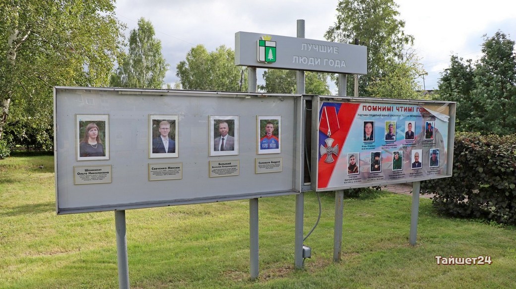Вот, например, стенд с Почётными гражданами Тайшетского района. В последний раз он попадал в поле нашего зрения в конце июля на фоне изъятия у экс-главы Тайшета соответствующего звания. Снимки были выцветшими, а черты лиц на них едва поддавались распознаванию.