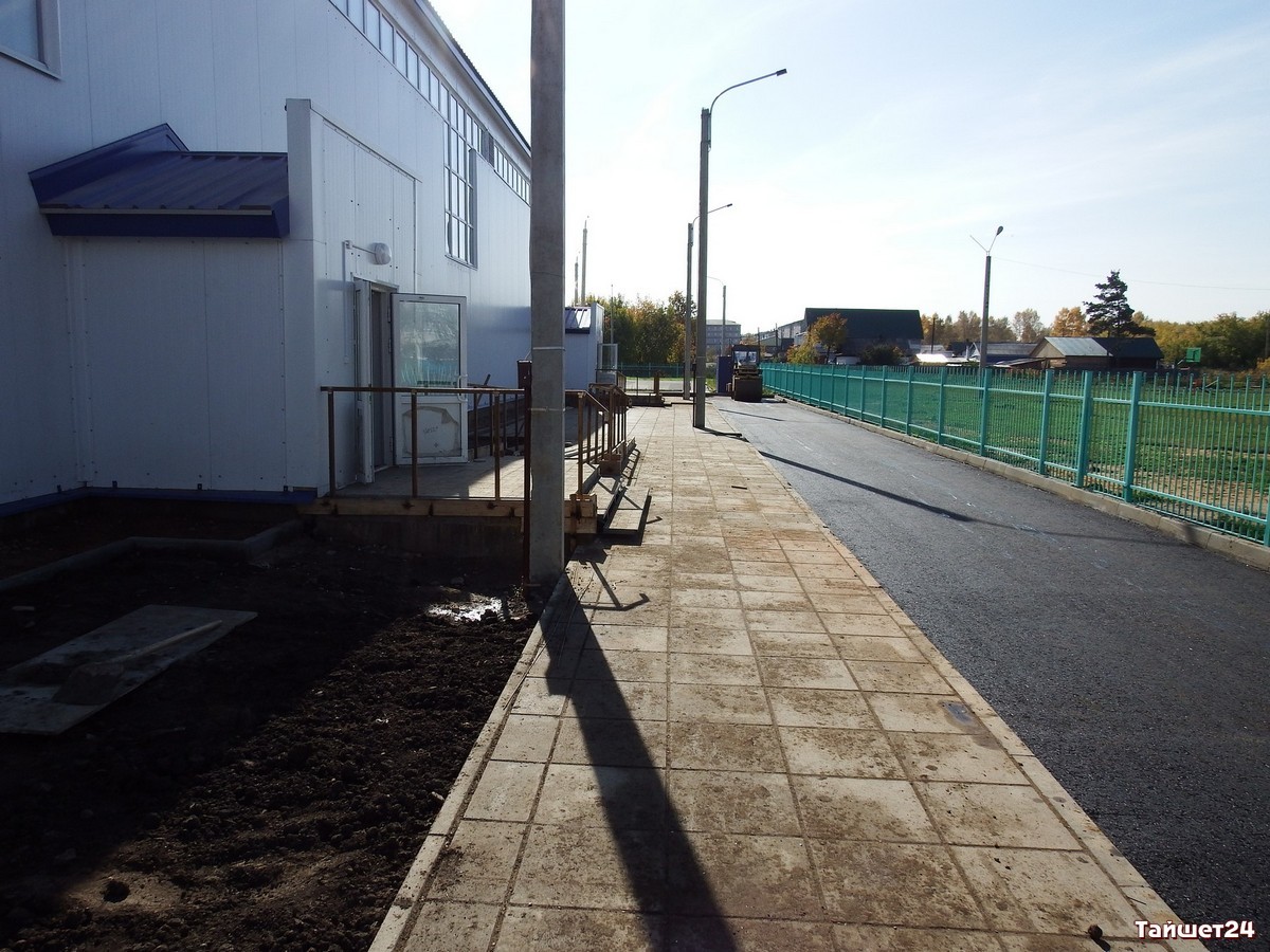 Основная работа по возведению ФОКа продолжилась в 2018 году. В итоге, благодаря добросовестной работе подрядчиков, в Тайшете за короткий срок был возведён современный спортивный комплекс. На его прилегающей территории расположены единственная в городе площадка для игры в большой теннис, а для самых маленьких посетителей — детская игровая площадка.