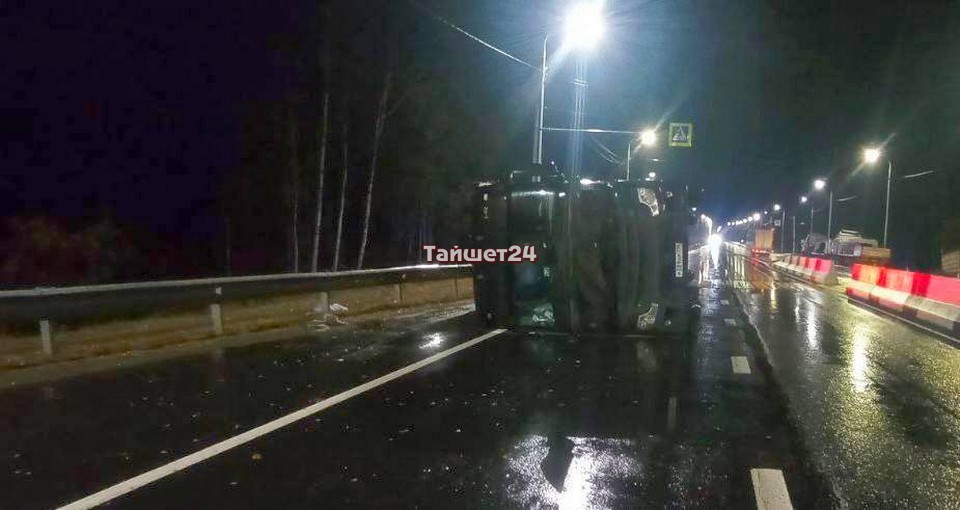Фура легла на бок на посту ДПС в Тайшетском округе
