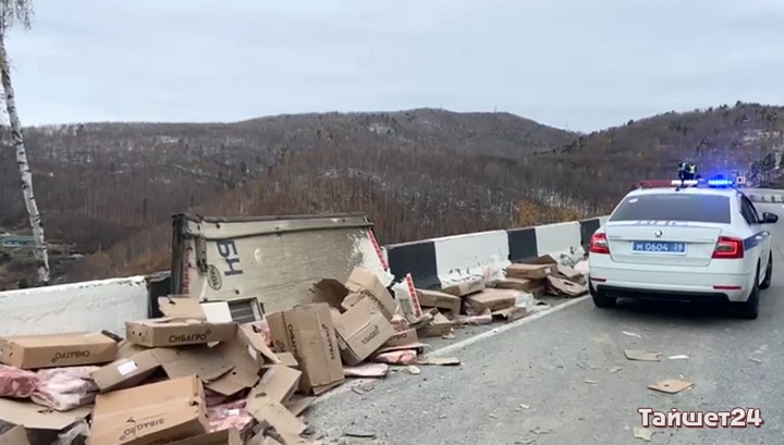 На трассе в Иркутской области перевернулась фура с мясом, погибли два человека