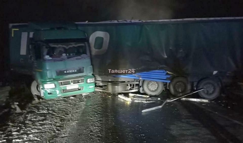Два большегруза Freightliner и КАМАЗ столкнулись сегодня, 4 ноября, вечером на федеральной трассе в Тайшетском районе, вблизи…