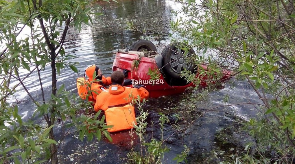 Возле Тайшета Honda улетела в болото. Водитель отвлеклась на телефон