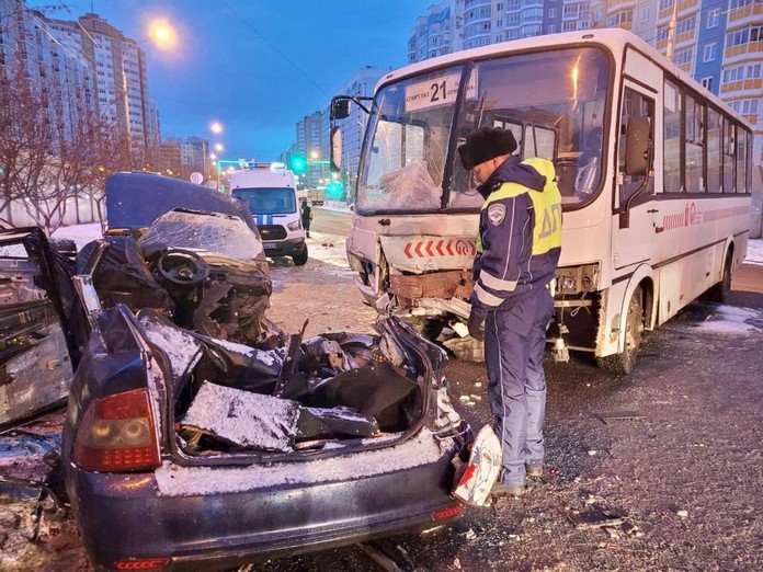 В Красноярске Lada врезалась в автобус, погибли три человека
