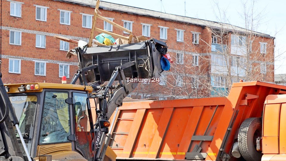 Скопившиеся за неустановленный срок мусорные курганы начали разгребать в Тайшете. Для этого привлекли дополнительную технику.