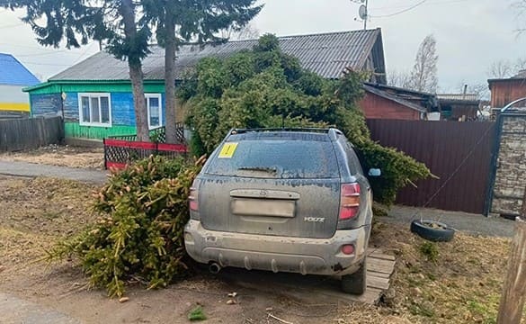 В посёлке Юрты ураганный ветер 5 апреля сорвал макушку с огромной ели. Верхушка дерева придавила машину,…