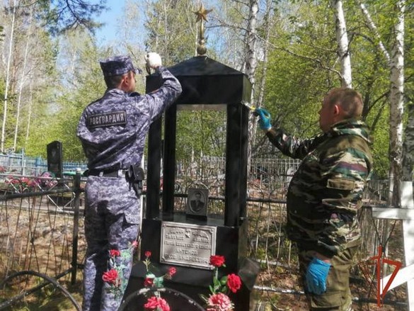 Тайшетские росгвардейцы навели порядок на могиле Героя Советского Союза