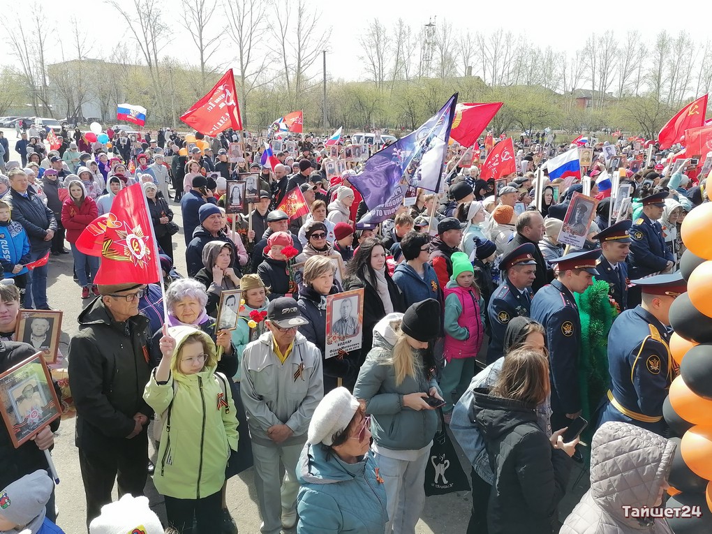 От привокзальной площади прошло шествие Бессмертного полка по улицам Тайшета. Жители города дошли колонной до площади…