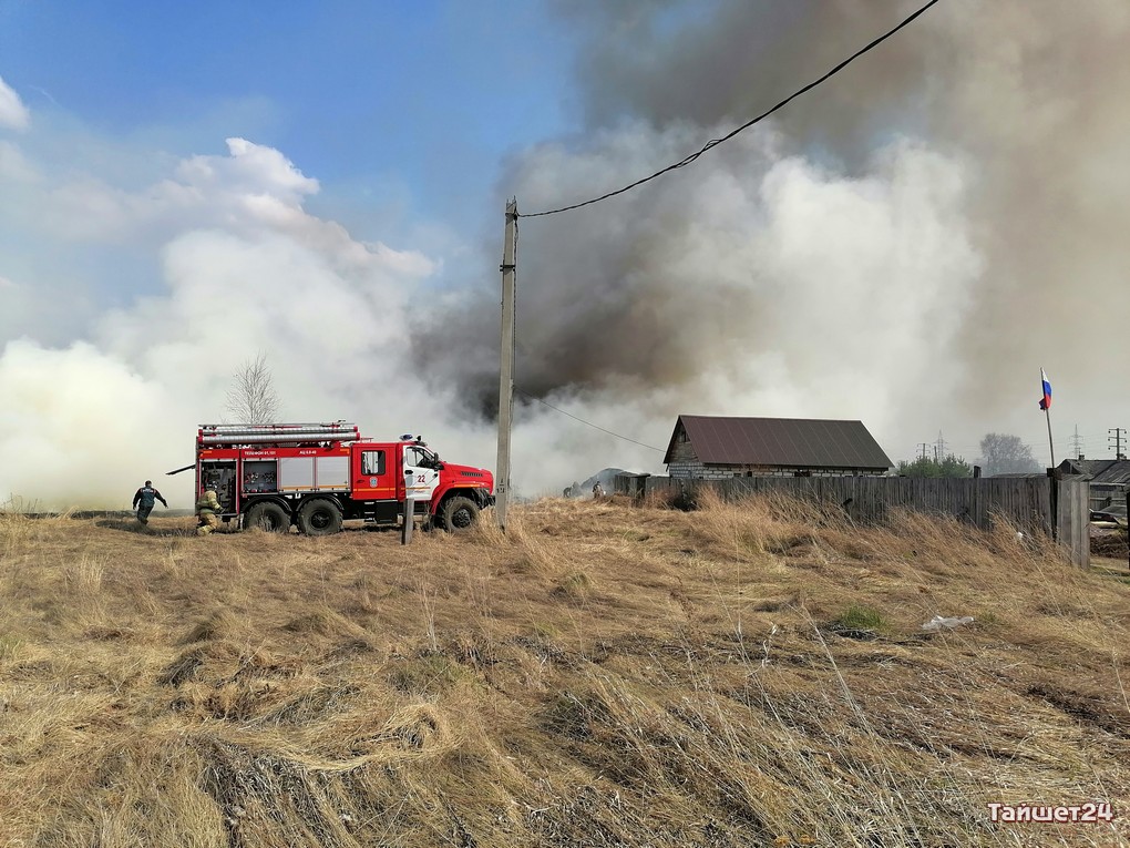 Сухую траву подожгли вблизи жилых домов на улице Карла Маркса в Тайшете. На месте работают два…