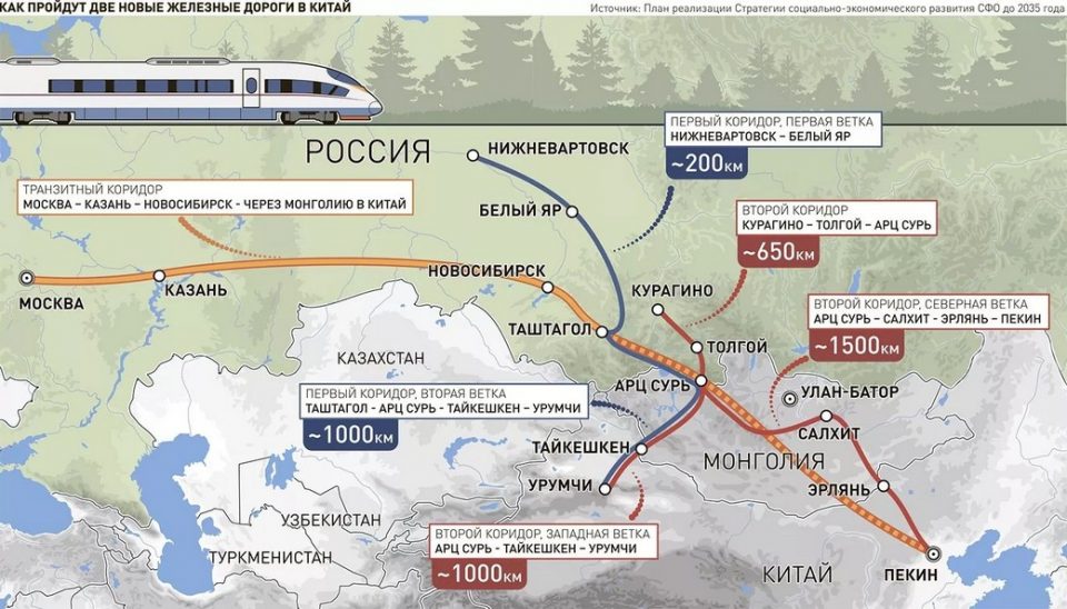 Россия планирует протянуть в Китай еще как минимум две железные дороги. Проект включен в план реализации…