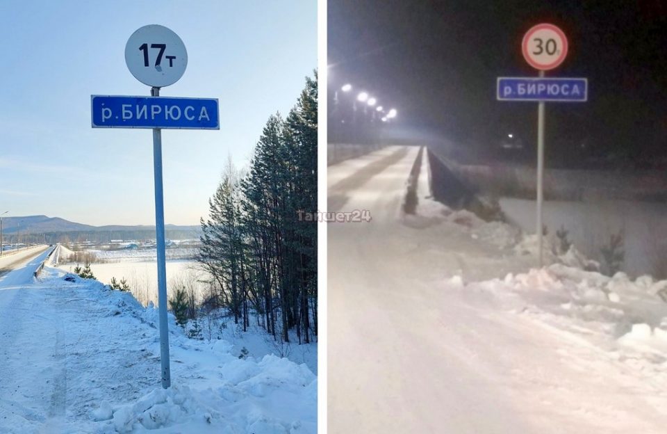 В селе Шелехово Тайшетского района внезапно поменяли дорожный знак «Ограничение массы» у въезда на мост через…