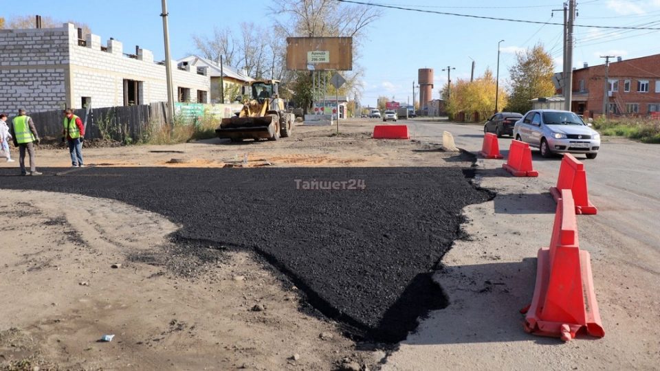 Дождались! В Тайшете на перекрёстке Горького-Транспортной укладывают асфальт
