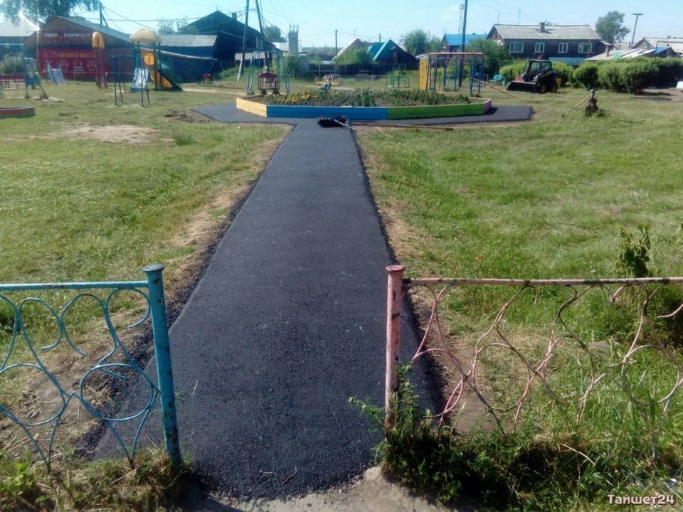 В Юртах асфальтируют пешеходные дорожки к центральной детской площадке