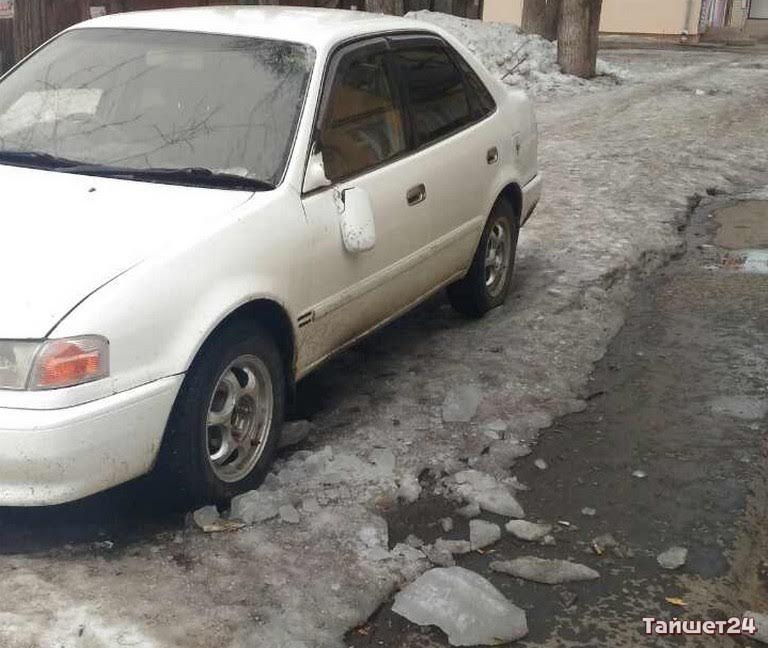 Глыба льда упала с крыши дома №123 по улице Гагарина в Тайшете на припаркованный автомобиль сегодня,…
