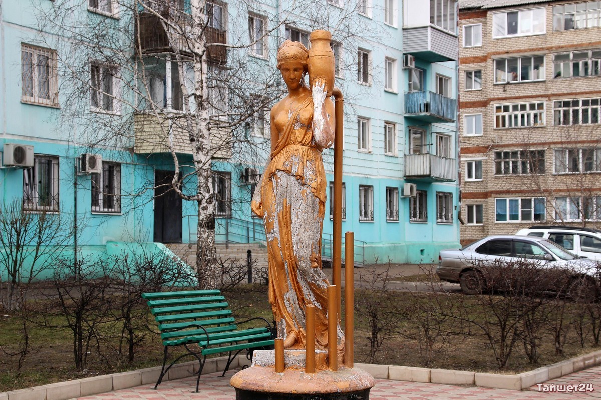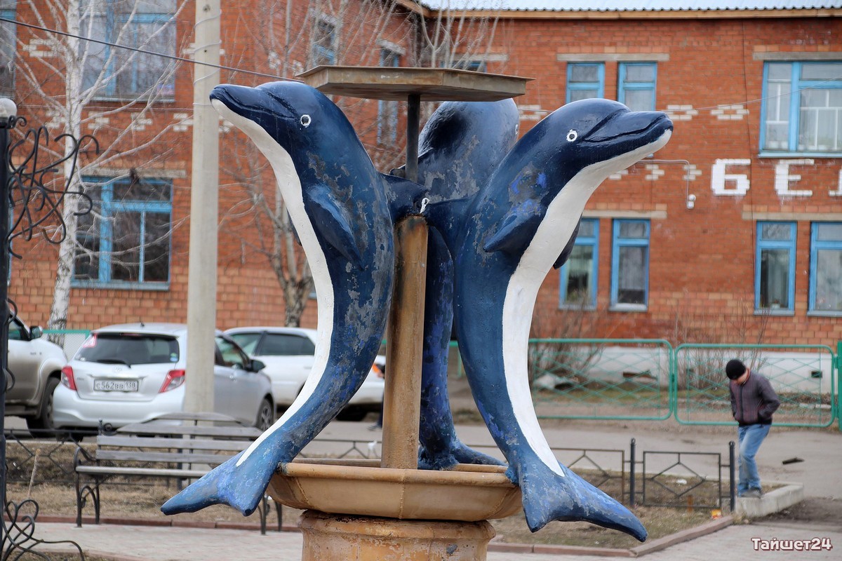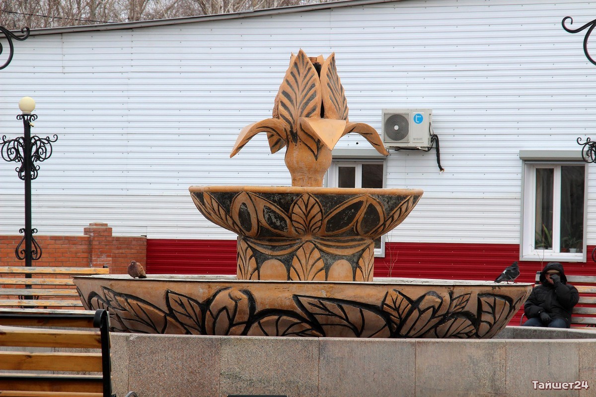 После зимней спячки фонтаны в Тайшете, даже самые свежие, выглядят несколько потрёпанными.