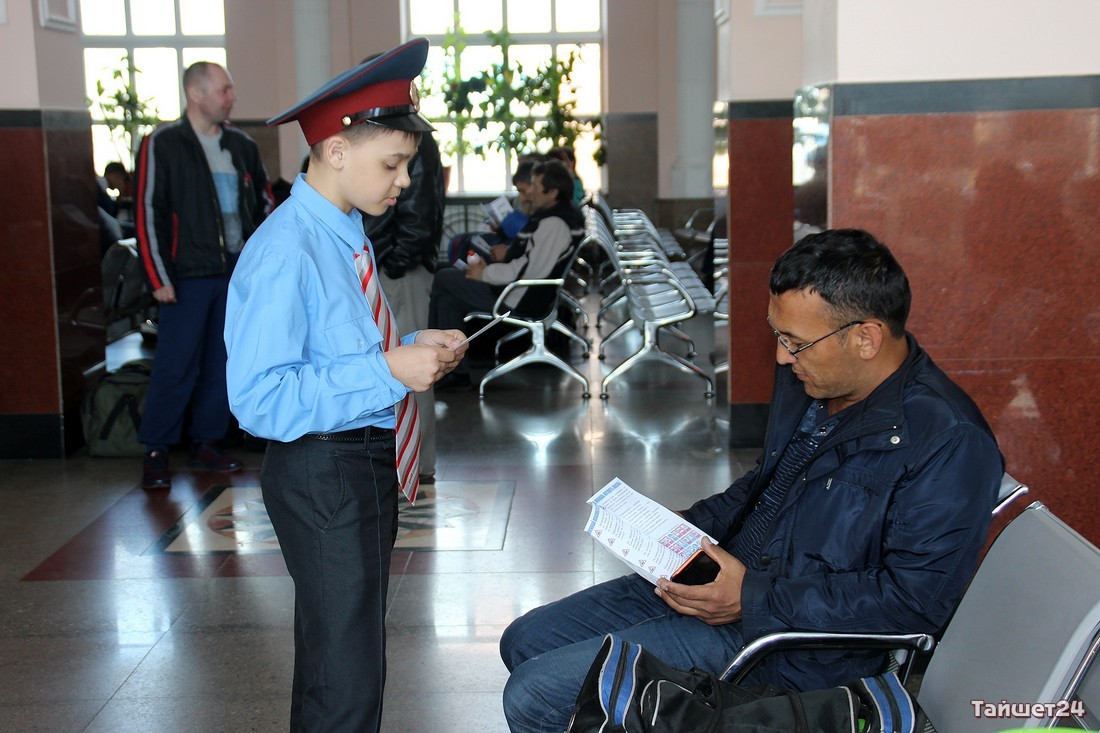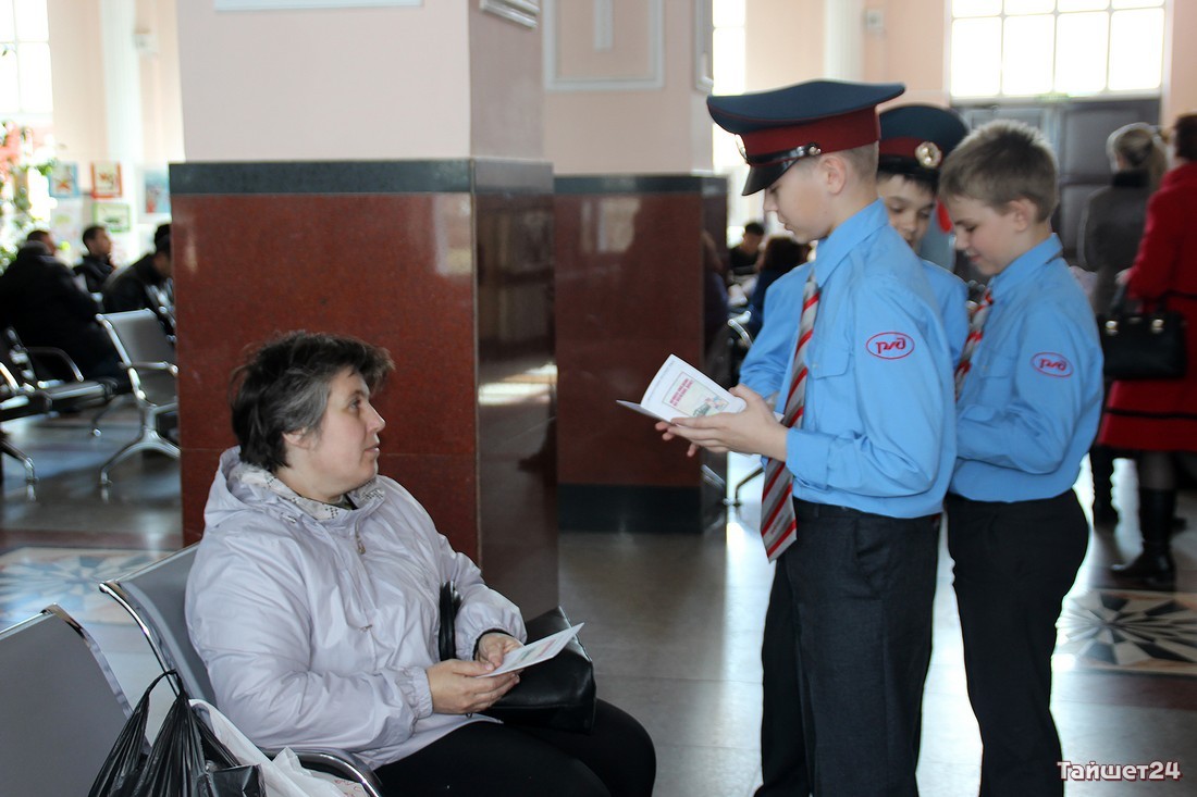 На днях в зале ожидания железнодорожного вокзала Тайшет учащиеся школы-интерната № 24 провели профилактическую акцию среди пассажиров. Они напомнили им о том, как нужно вести себя, находясь на железной дороге, и раздали буклеты-памятки. Правила, написанные в них просты, и их соблюдение поможет избежать неприятностей: