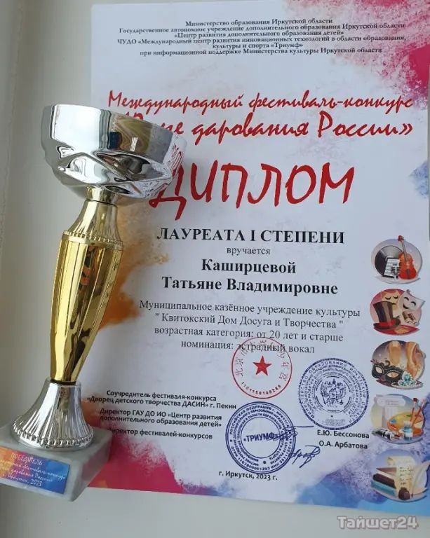 По итогу фестиваля-конкурса Татьяна награждена дипломом лауреата 1 степени и кубком Победителя!