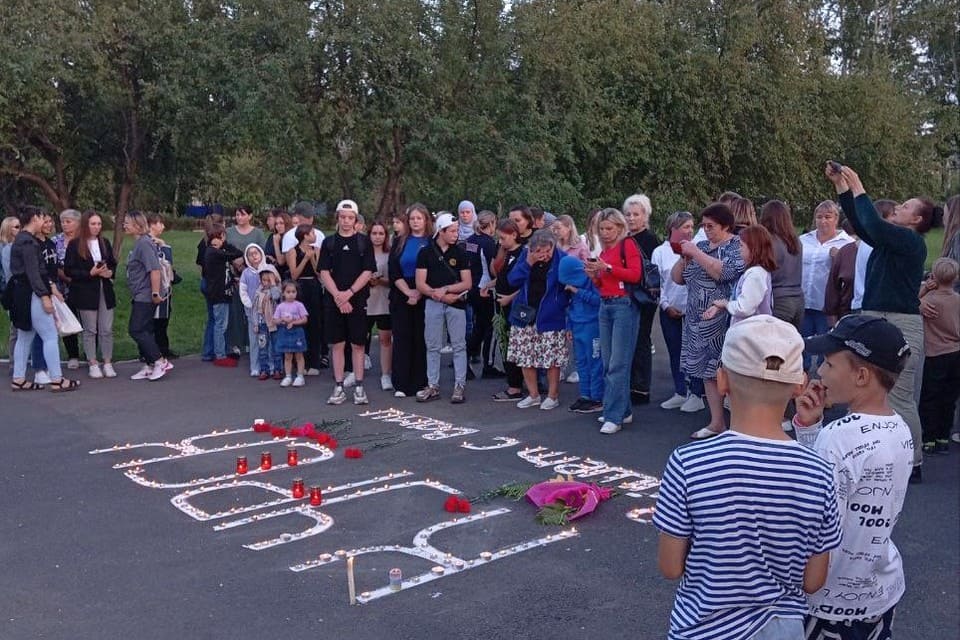 Из горящих свечей на площади перед обелиском жители Тайшета выложили надпись: «Курск, Тайшет с вами!».