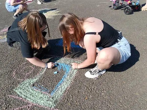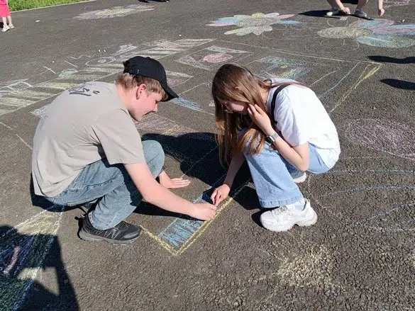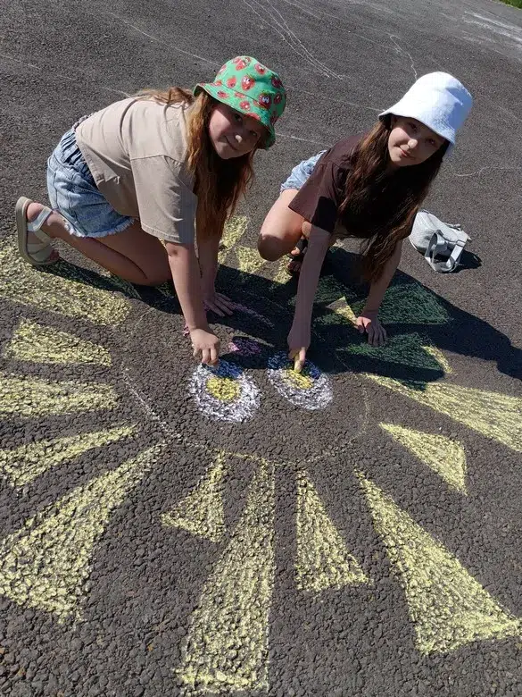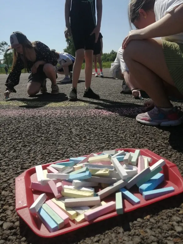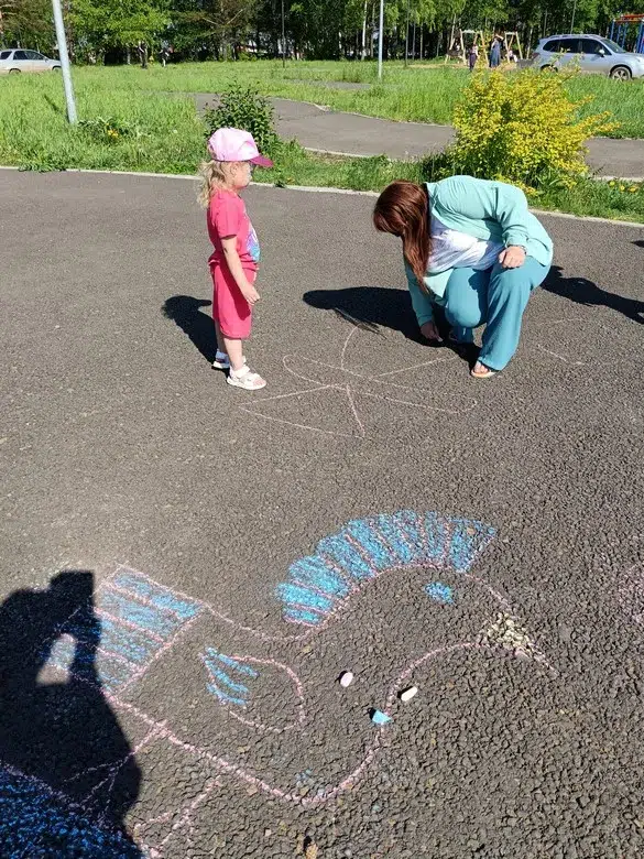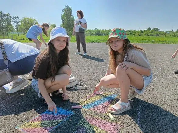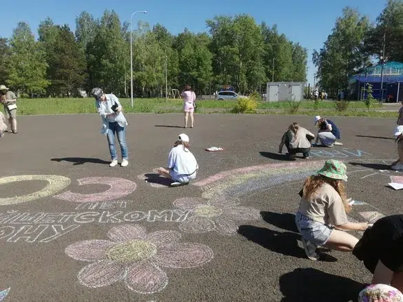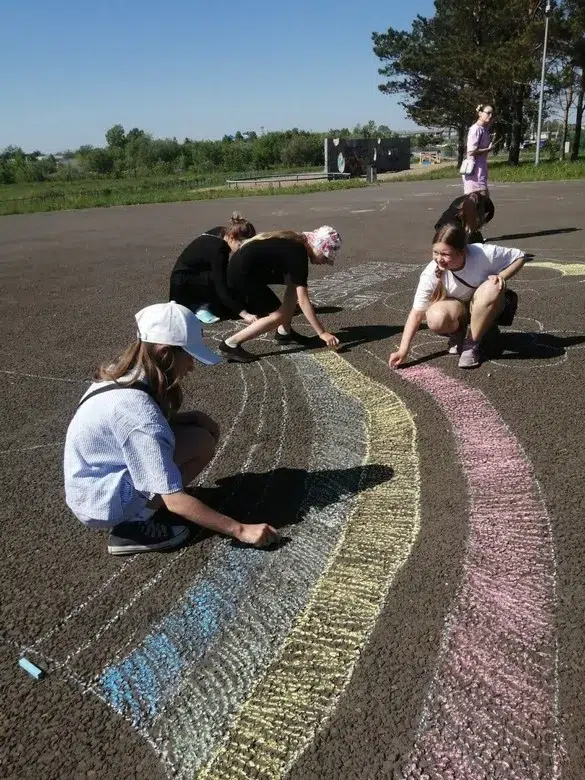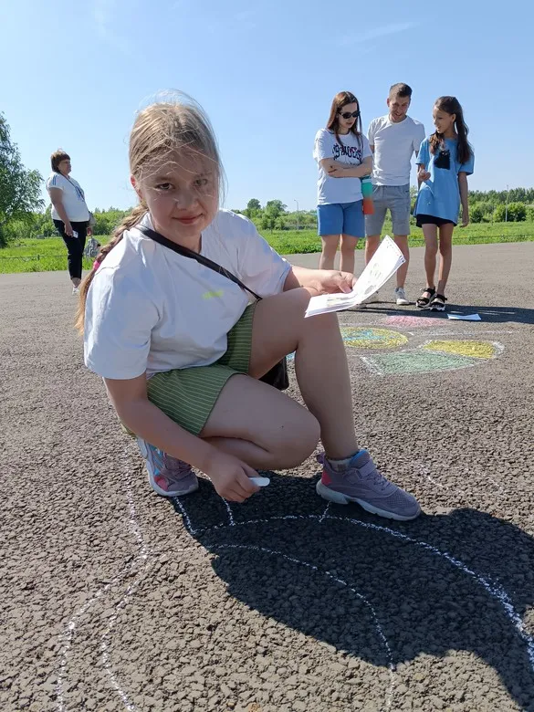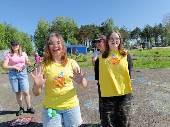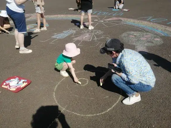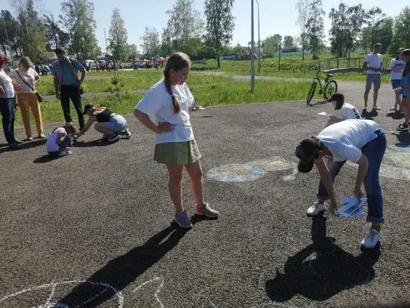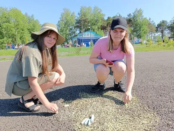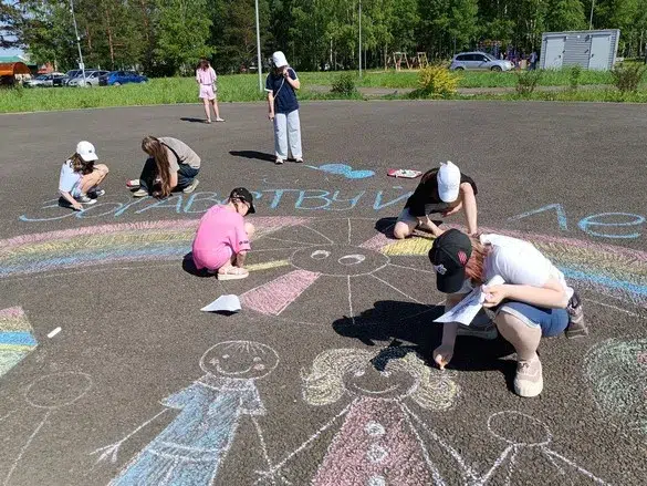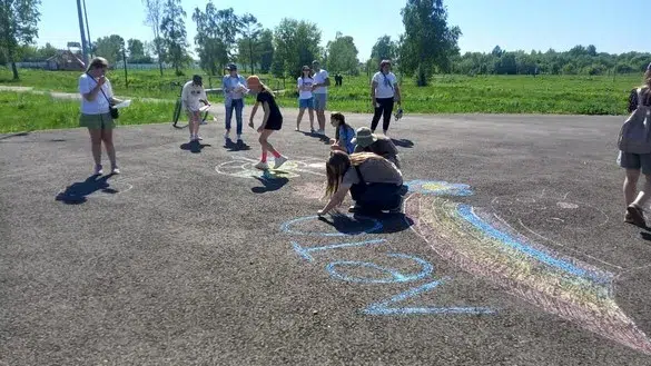 Сегодня в Городском парке на празднике детства ученики и преподаватели Тайшетской детской художественной школы, а также гости праздника — дети и родители — разноцветными мелками нарисовали яркие и добрые рисунки на асфальте.