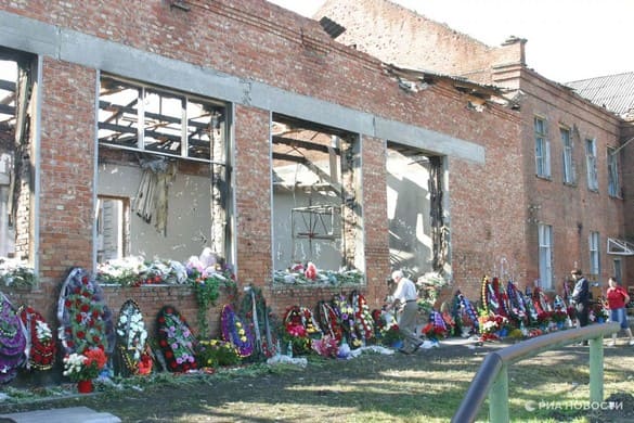 В первый день учебного года, двадцать лет назад, во время праздничной линейки из подъехавшего грузового автомобиля выскочили вооруженные боевики. Они открыли стрельбу и стали сгонять всех присутствующих в здание школы.