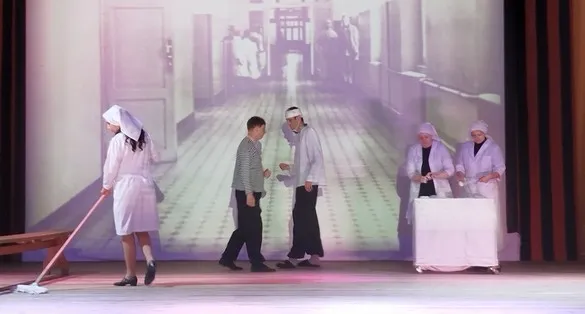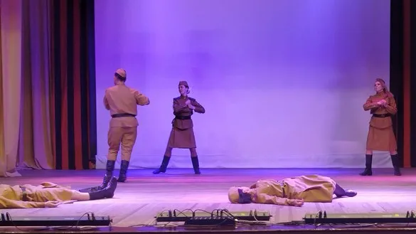 Тронула зрителей театрализация. На сцене был показан фрагмент выступления в госпитале фронтовой концертной бригады. Прозвучали знакомые не одному поколению песни военных лет: «В лесу прифронтовом», «Лизавета», «Синий платочек», «Песенка фронтового шофера», «Ой, туманы», задорные «Фронтовые частушки» в исполнении народного вокального ансамбля «Калина красная». Трогательной была сцена, когда раненый боец попросил гитару и начал наигрывать первые аккорды песни «Нам нужна одна Победа». Артистка из фронтовой бригады, которую сыграла Алена Михеенко, спела под его аккомпанемент. Раненые бойцы, медсестры, санитарки исполнили заветное «Нам нужна одна Победа».