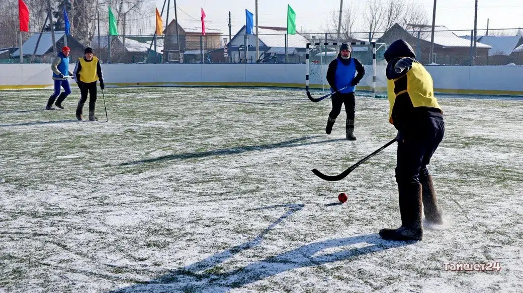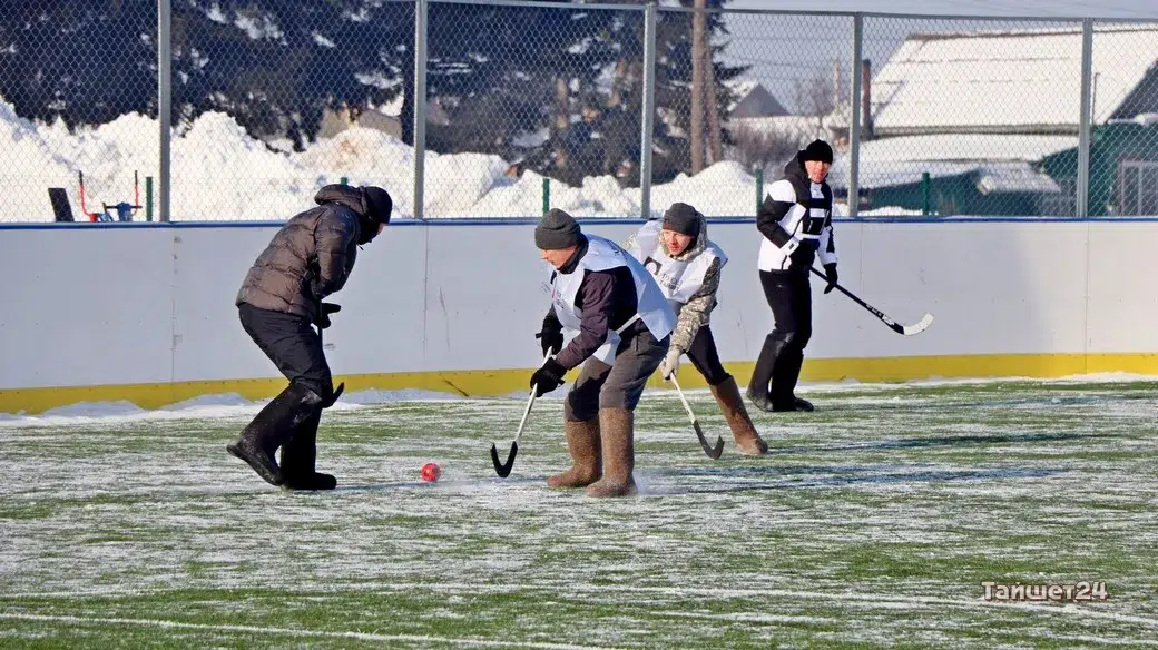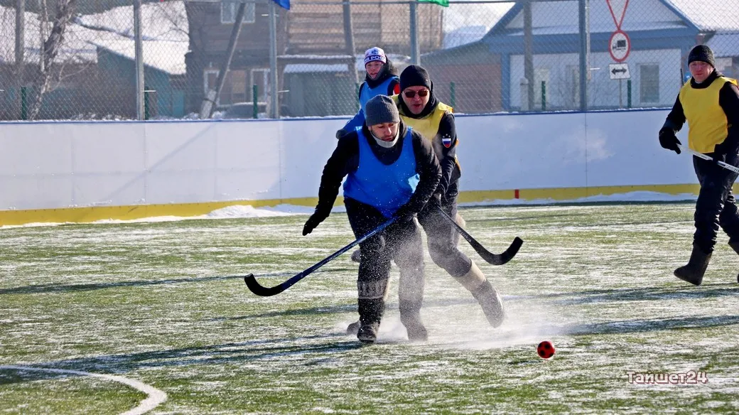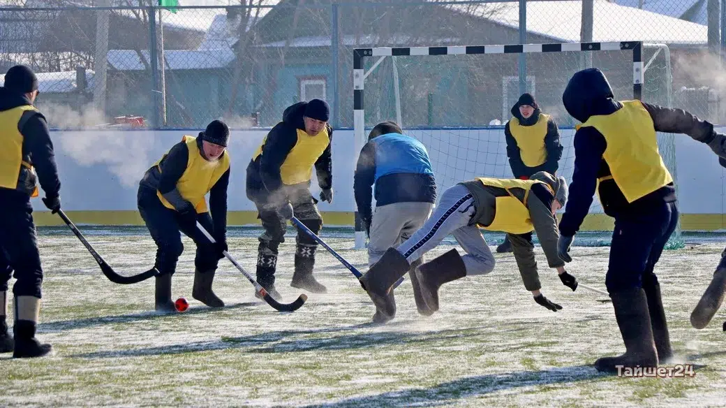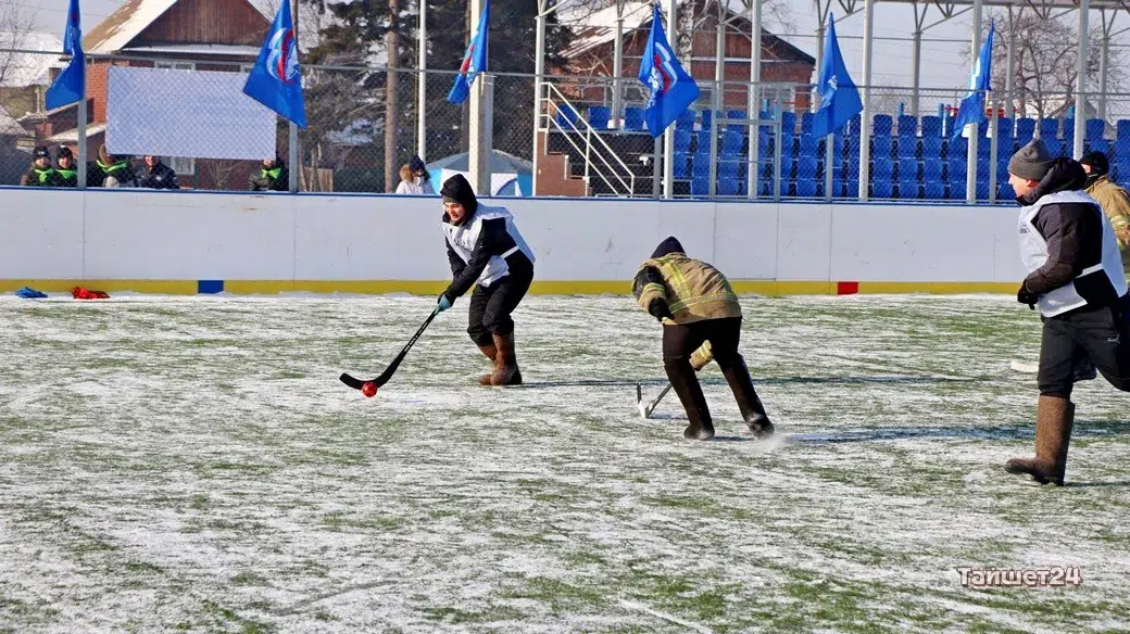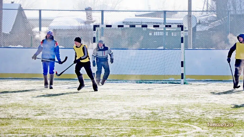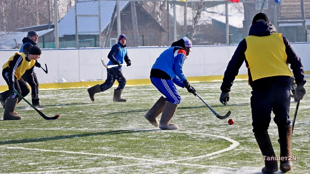 На территории открытого физкультурно-оздоровительного комплекса в Тайшете сегодня, 24 февраля, прошёл турнир по хоккею в валенках, посвящённый празднованию Дня защитника Отечества.