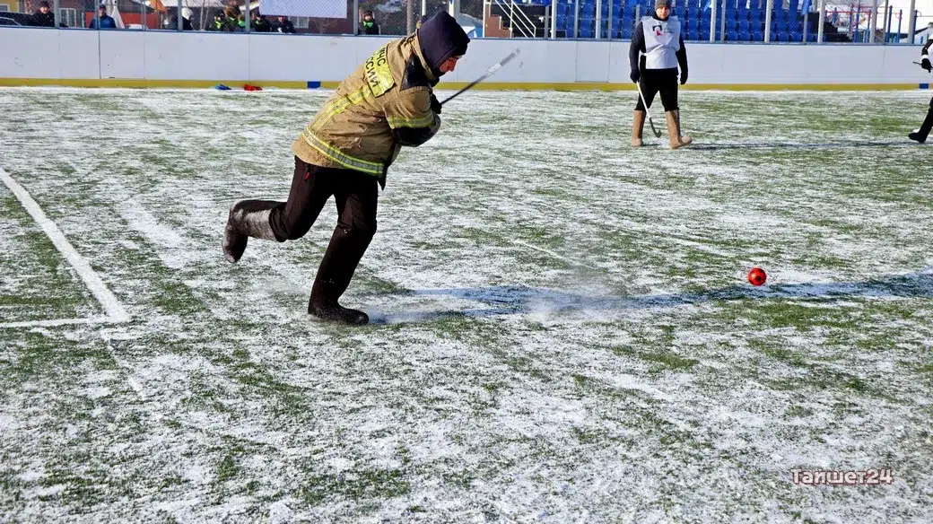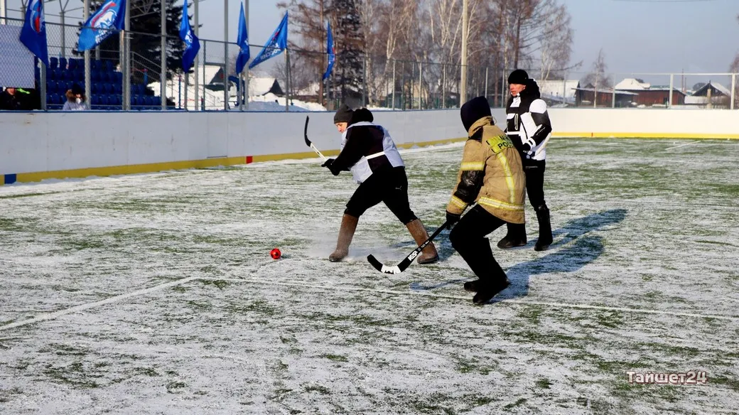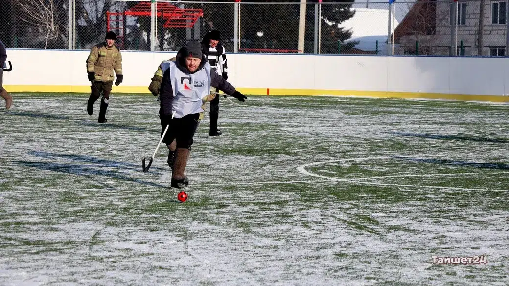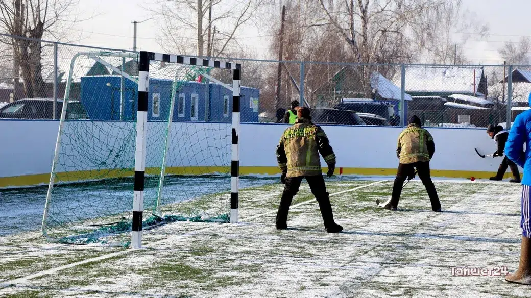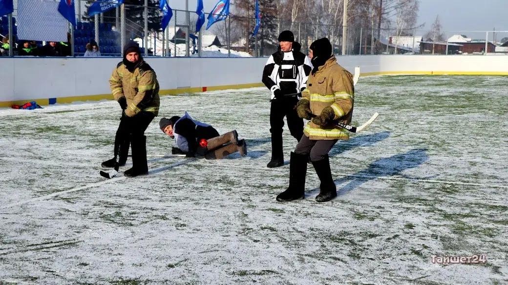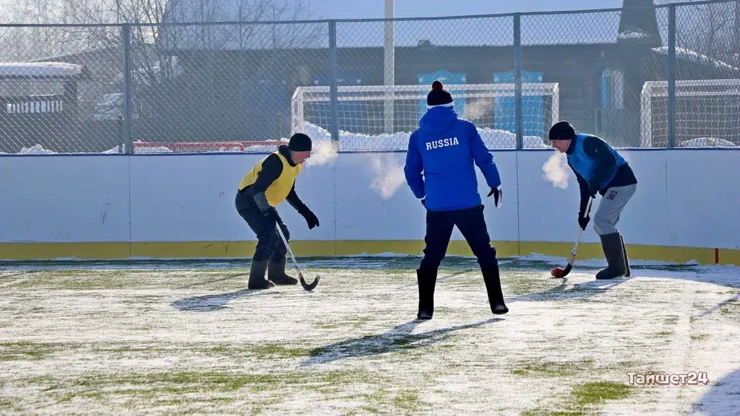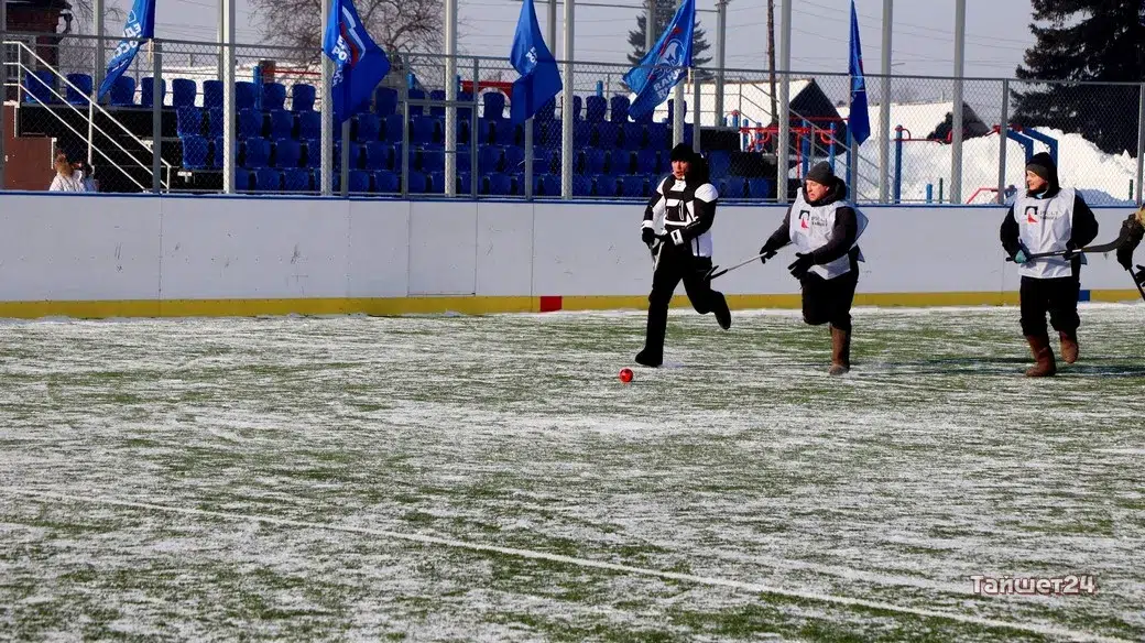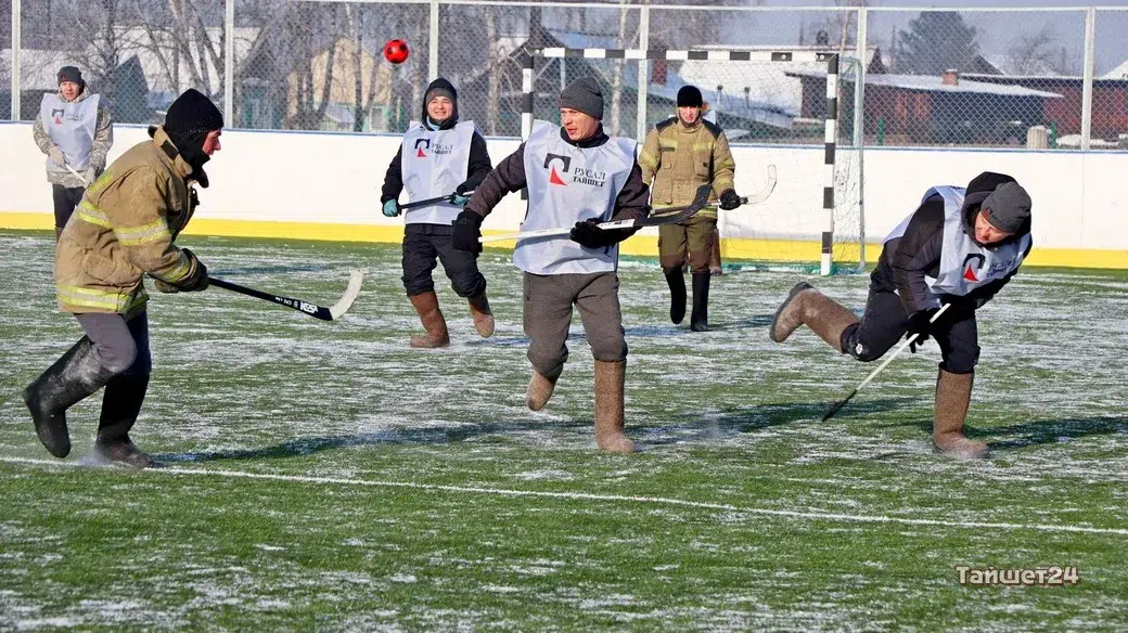 На территории открытого физкультурно-оздоровительного комплекса в Тайшете сегодня, 24 февраля, прошёл турнир по хоккею в валенках, посвящённый празднованию Дня защитника Отечества.